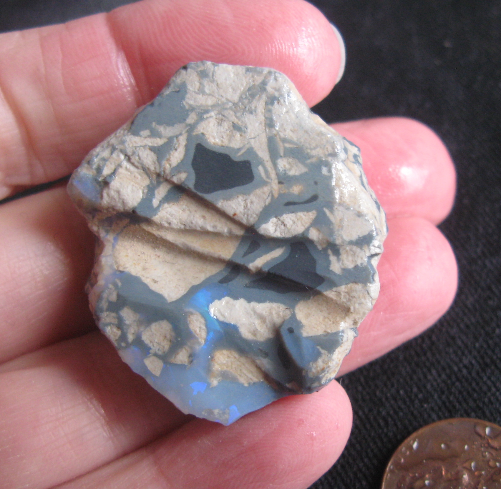 Lightning Ridge Opal in sandstone some Light Blue 38 x 35 x 12mm .43oz IMG3109