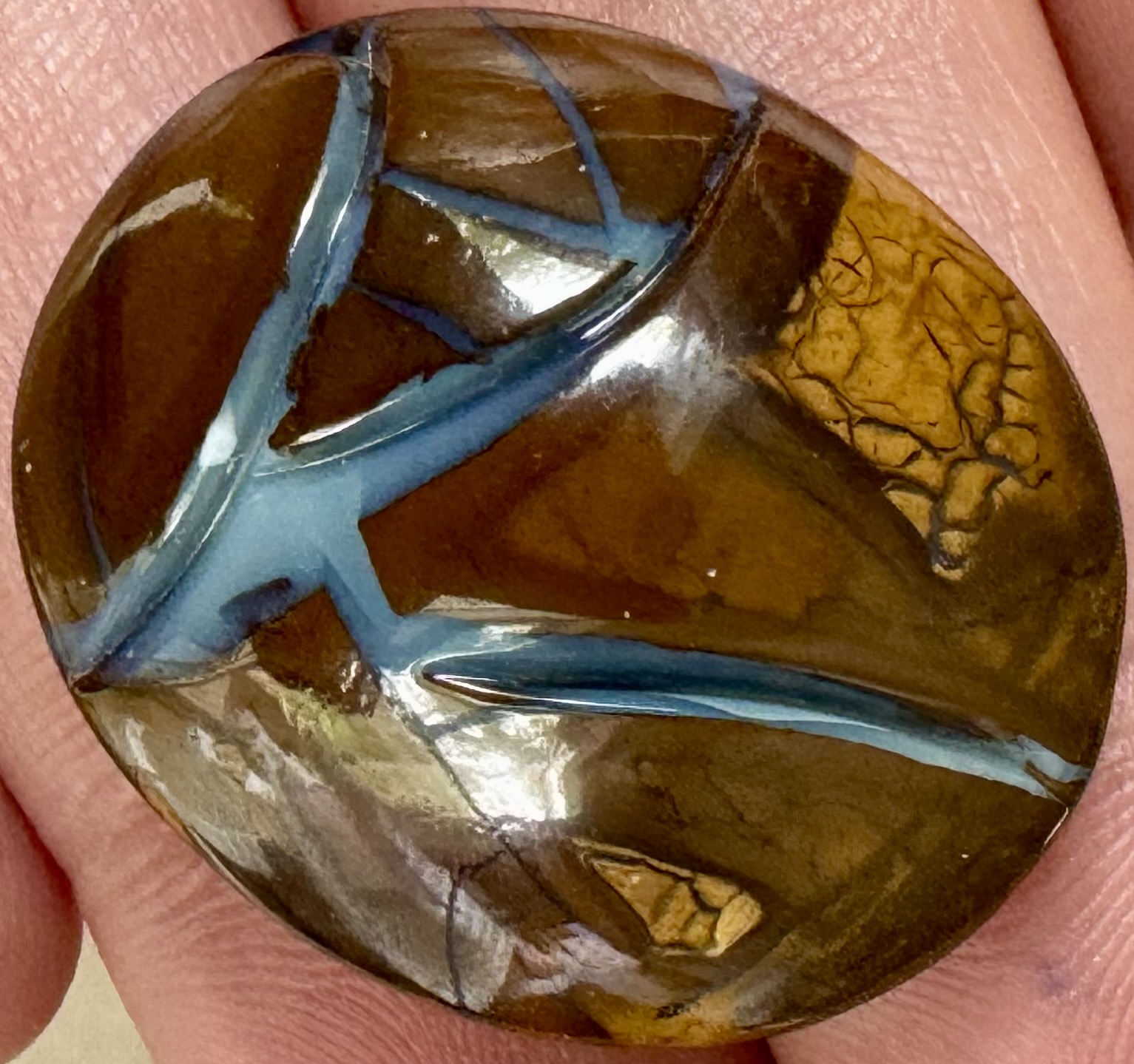Boulder Opal Blues with white fangs 43mm x 30mm x 8mm thick .57oz IMG8782