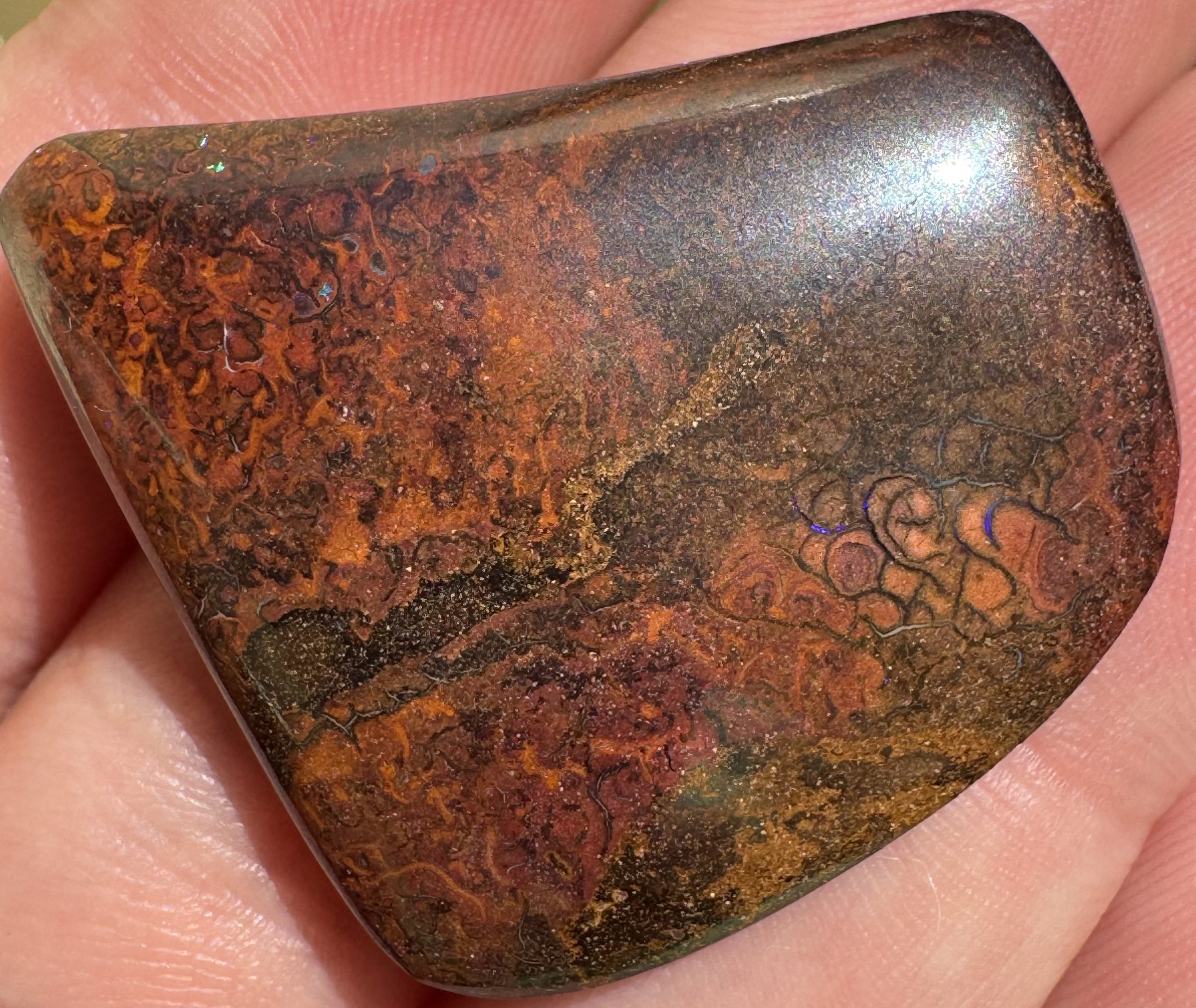 Boulder Opal Blues with white fangs 43mm x 30mm x 8mm thick .57oz IMG8782