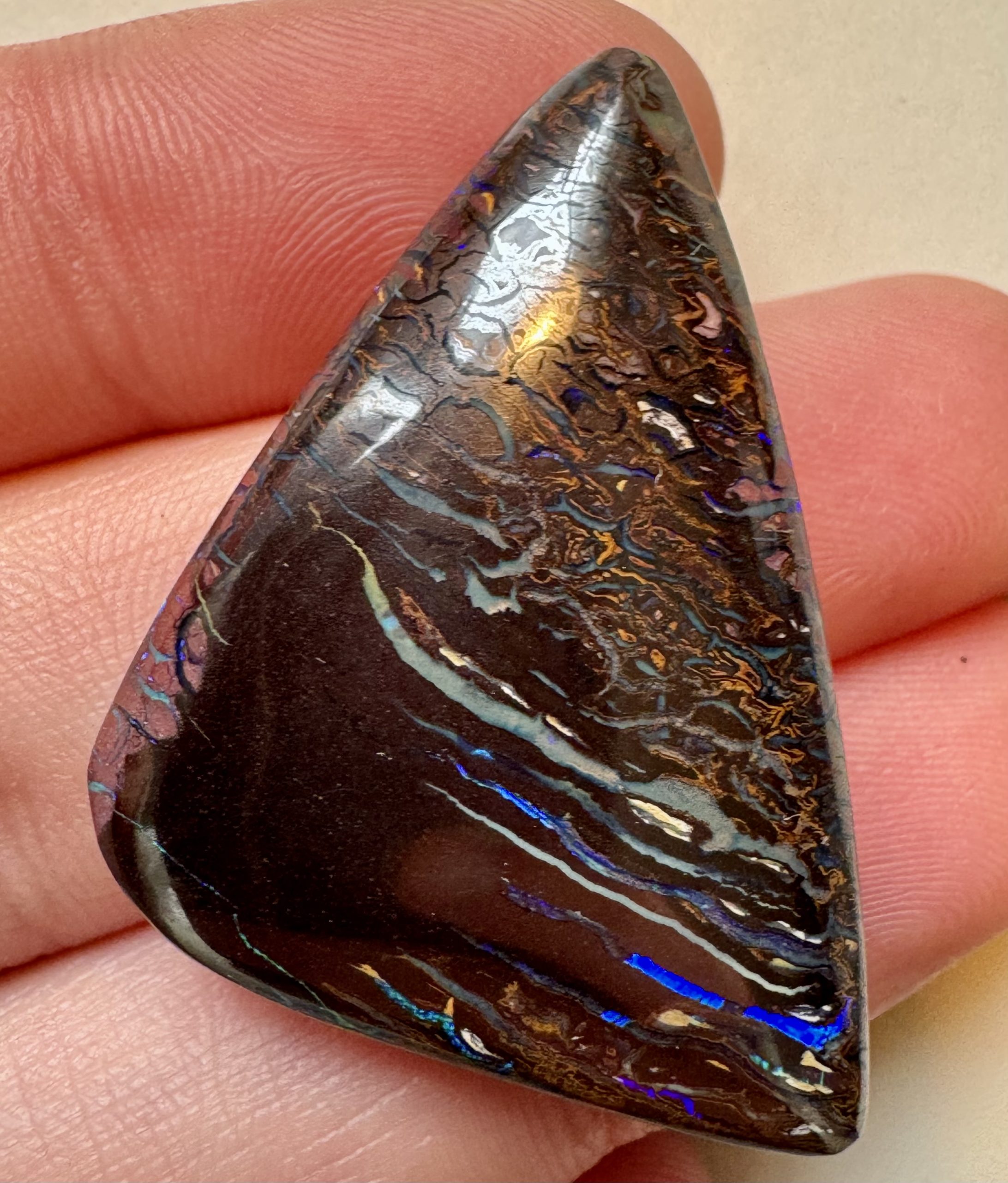 Boulder Opal Blue/ Purple Triangle Pendant Drilled 39 x 29 x 9mm IMG2708