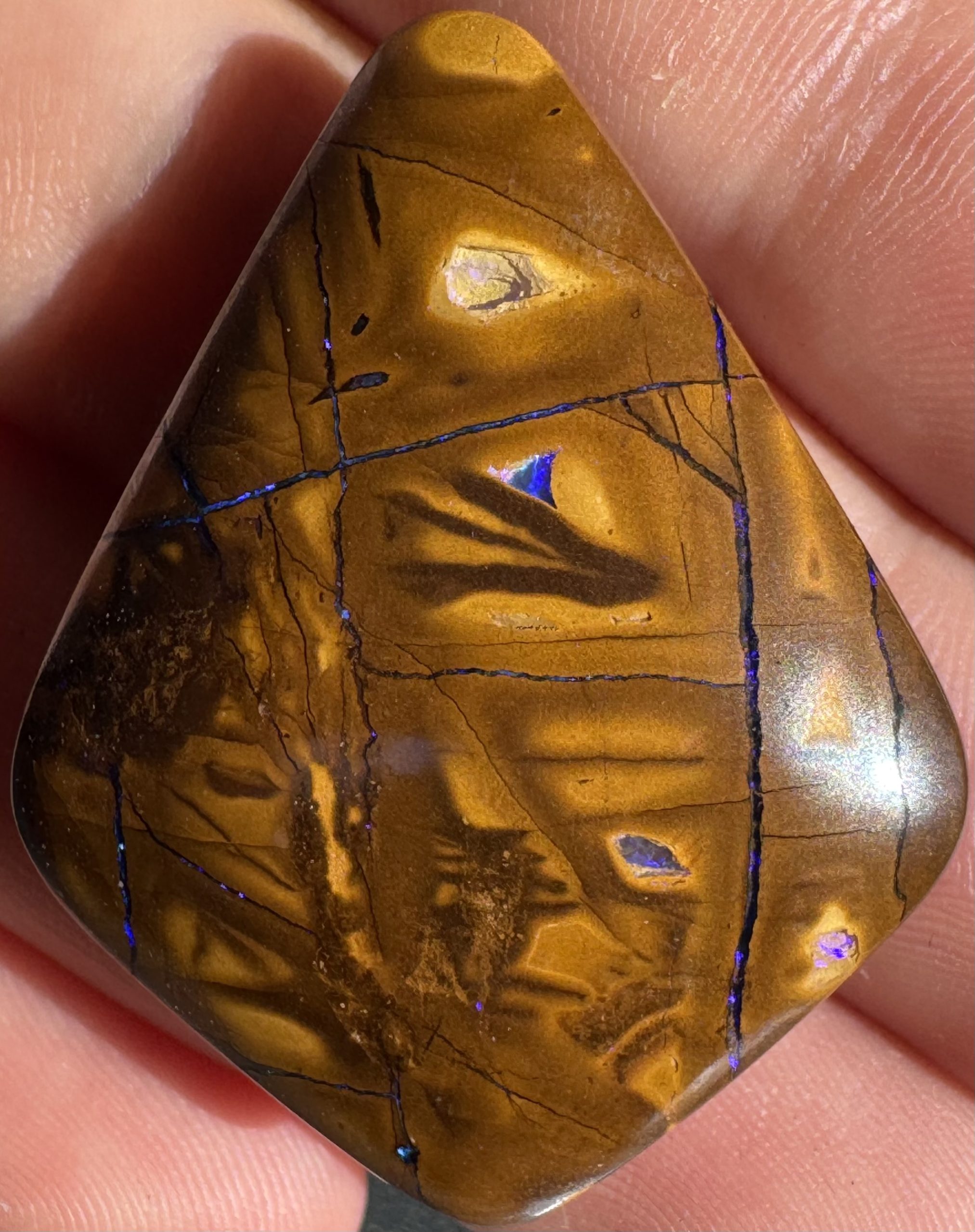 Boulder Opal Blue/ Purple Triangle Pendant Drilled 39 x 29 x 9mm IMG2708