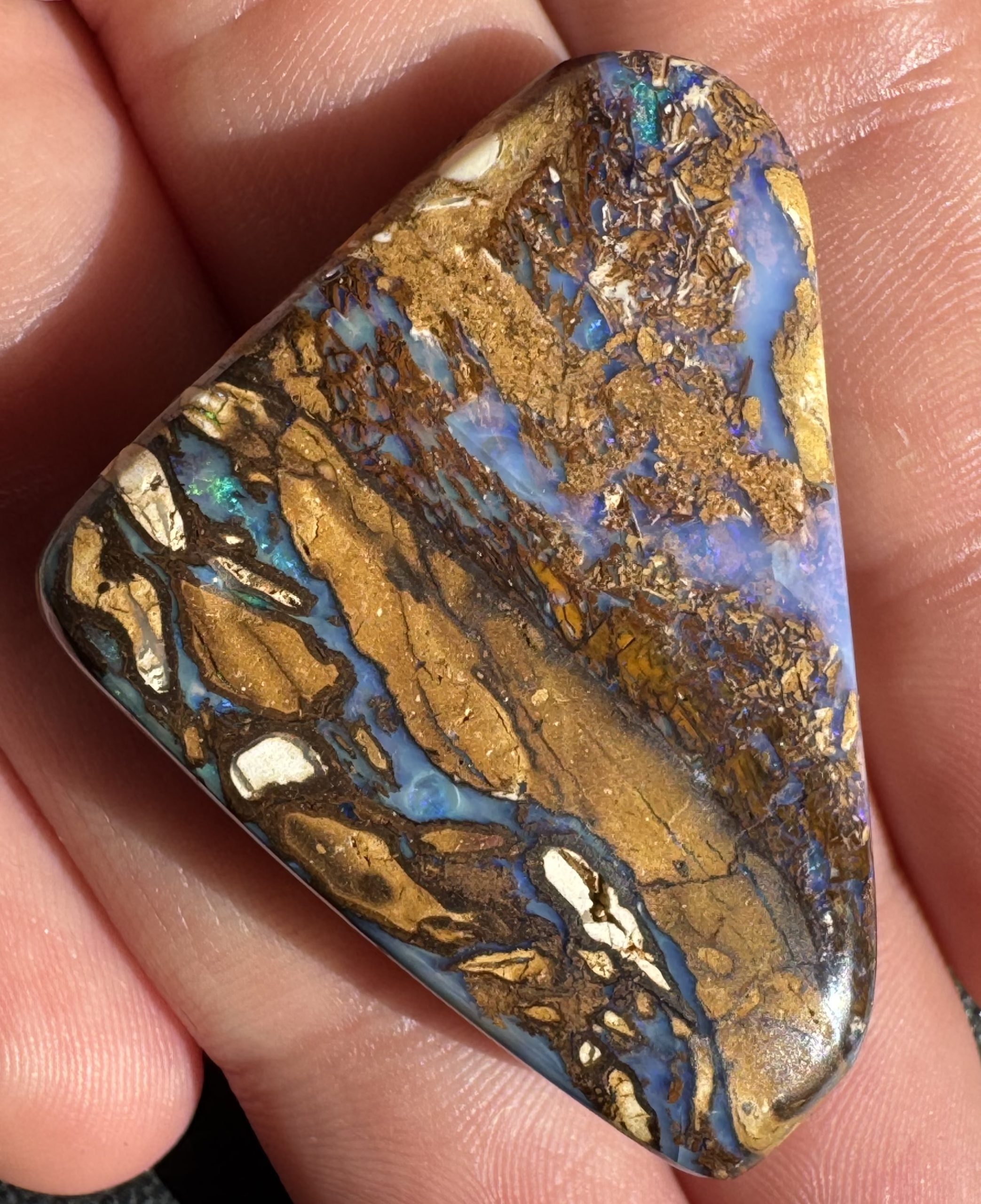 Boulder Opal Blue/ Purple Triangle Pendant Drilled 39 x 29 x 9mm IMG2708