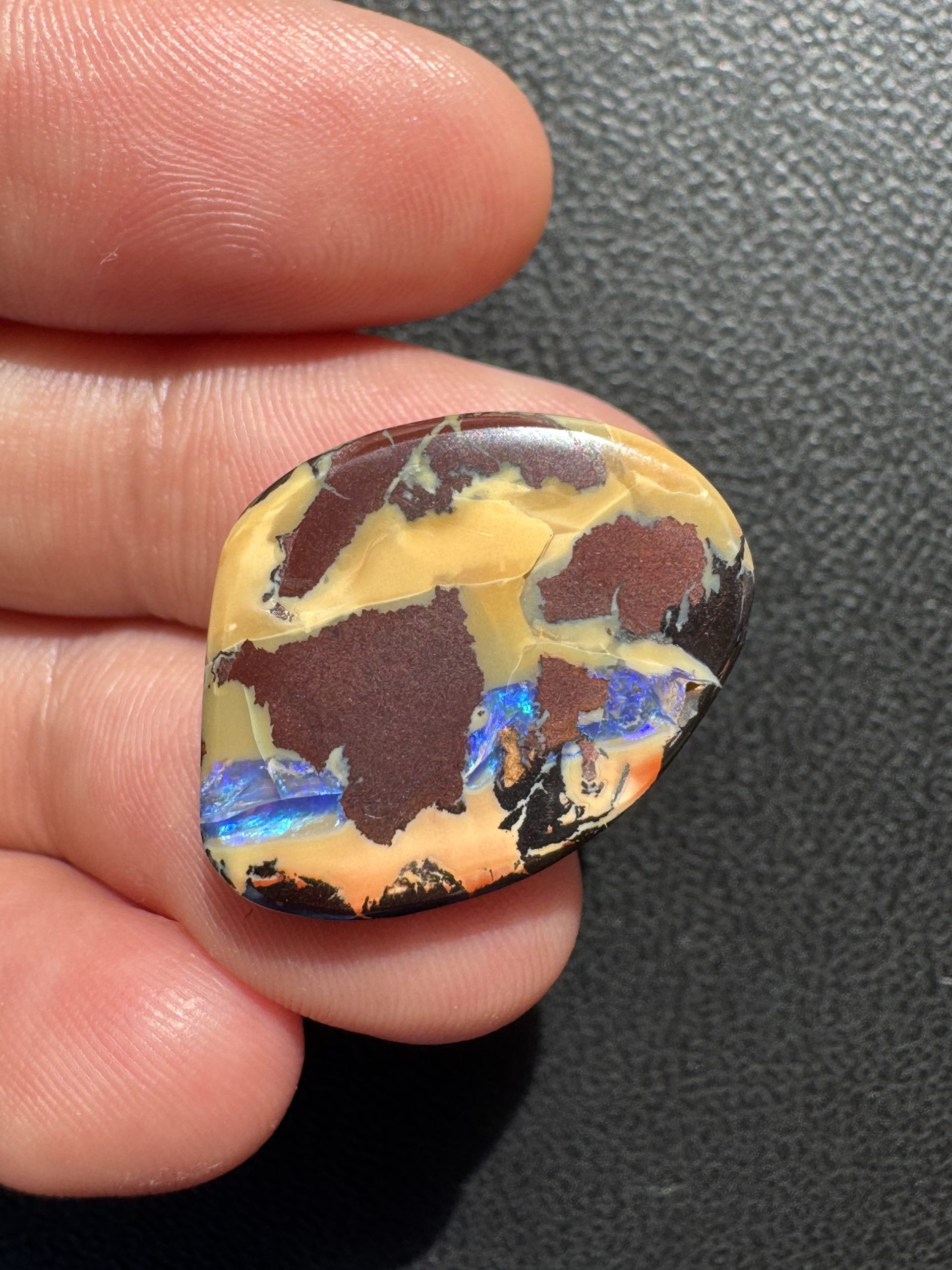 Boulder Opal Blues with white fangs 43mm x 30mm x 8mm thick .57oz IMG8782